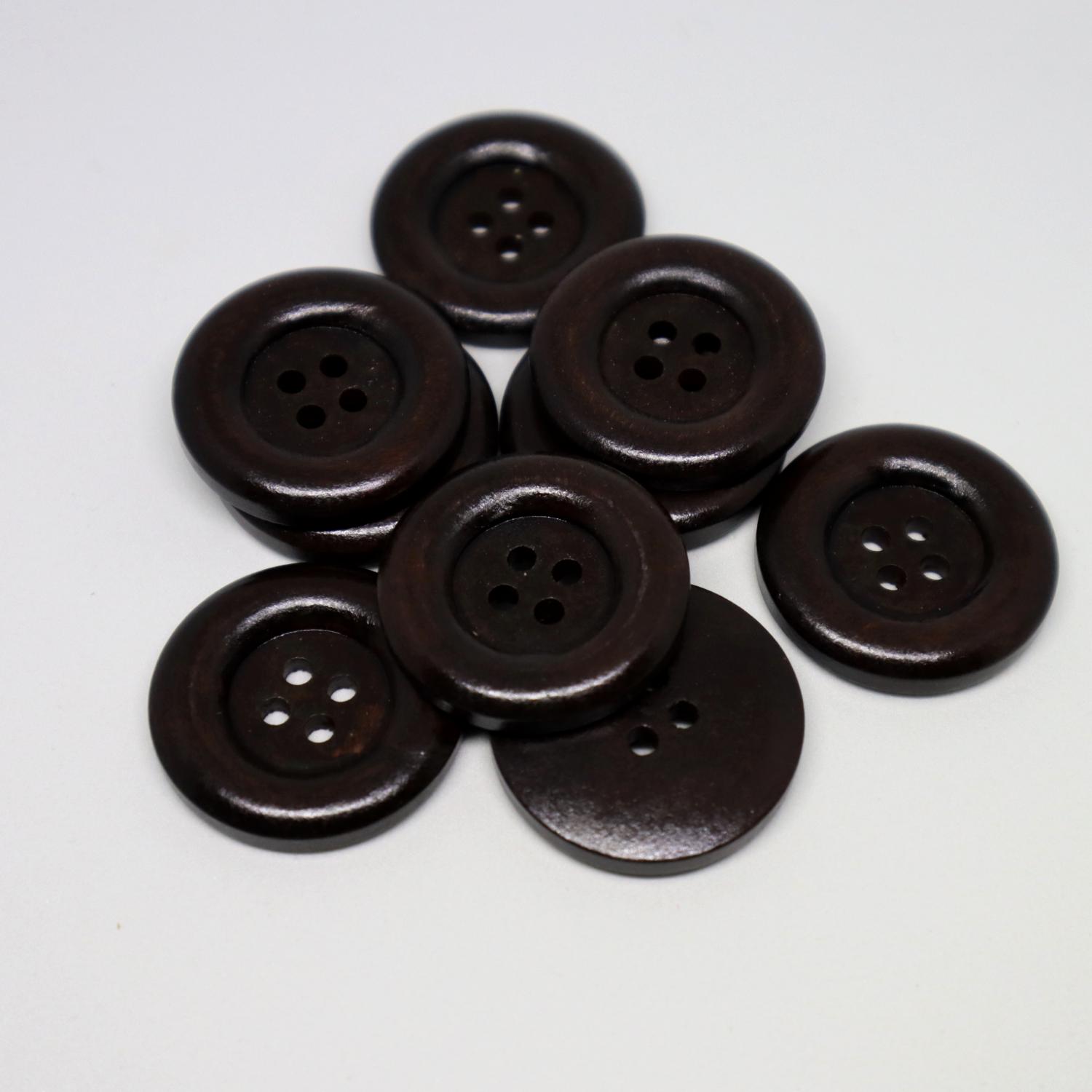 Shiny natural wood buttons, dark brown 30 mm